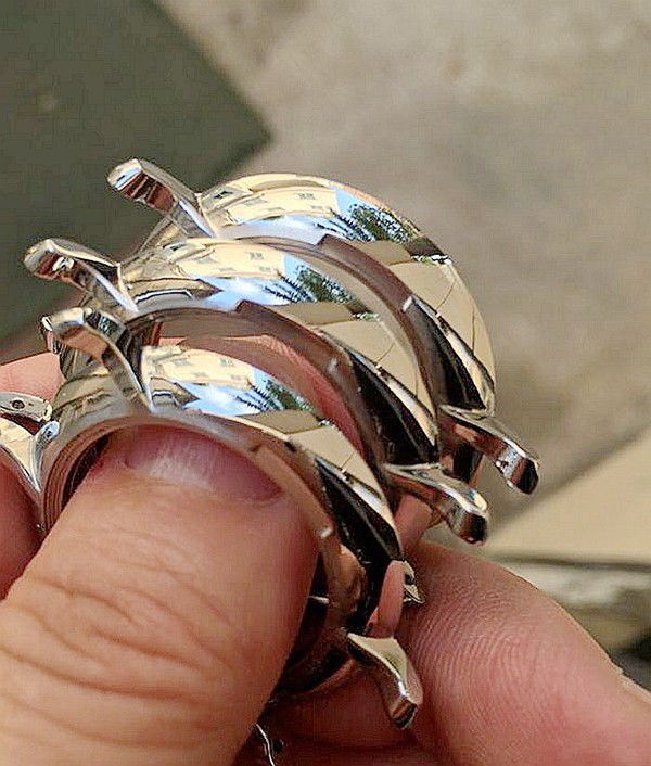 6、每個機臺上配置3個拋盤,每個拋盤可放32個掛具,每個掛具可根據產品大小,放32-64-96-128件產品,每組產品拋光時間約25-30分鐘,日產量可達10000件以上。